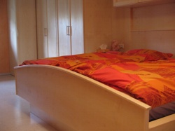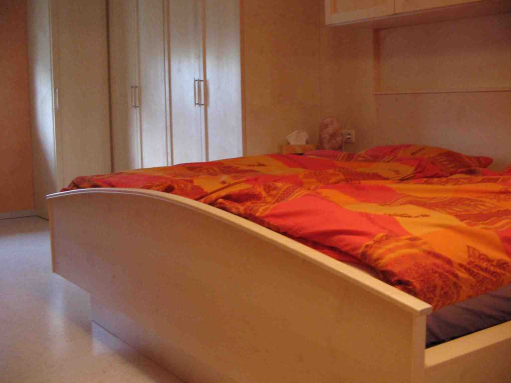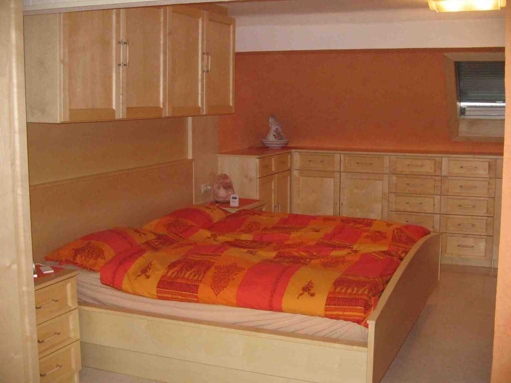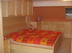 Bett, Nachttischen, Schrankwand und diversen Unterschränken
