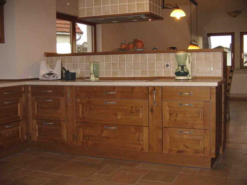 auf die Unterschränke mit Rundkante und offenem Regal an der