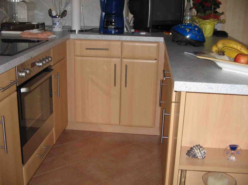 von links auf die Oberschränke mit ausgespartem