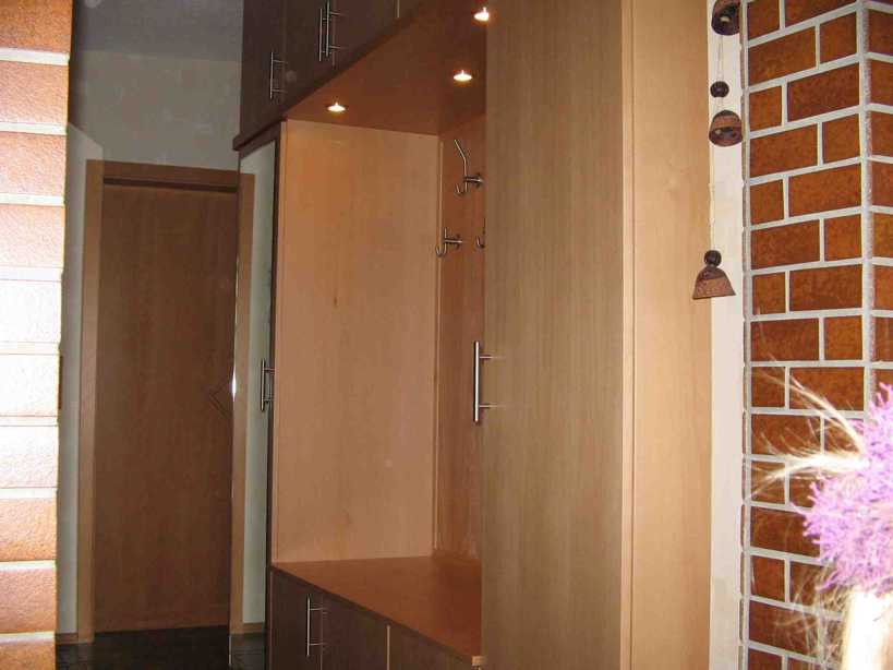 von rechts auf eine Garderobe in einer Mauernische