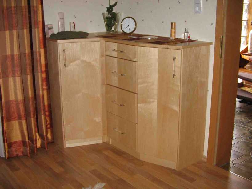 abgeschrägtem, offenem Regal an der linken Seite.