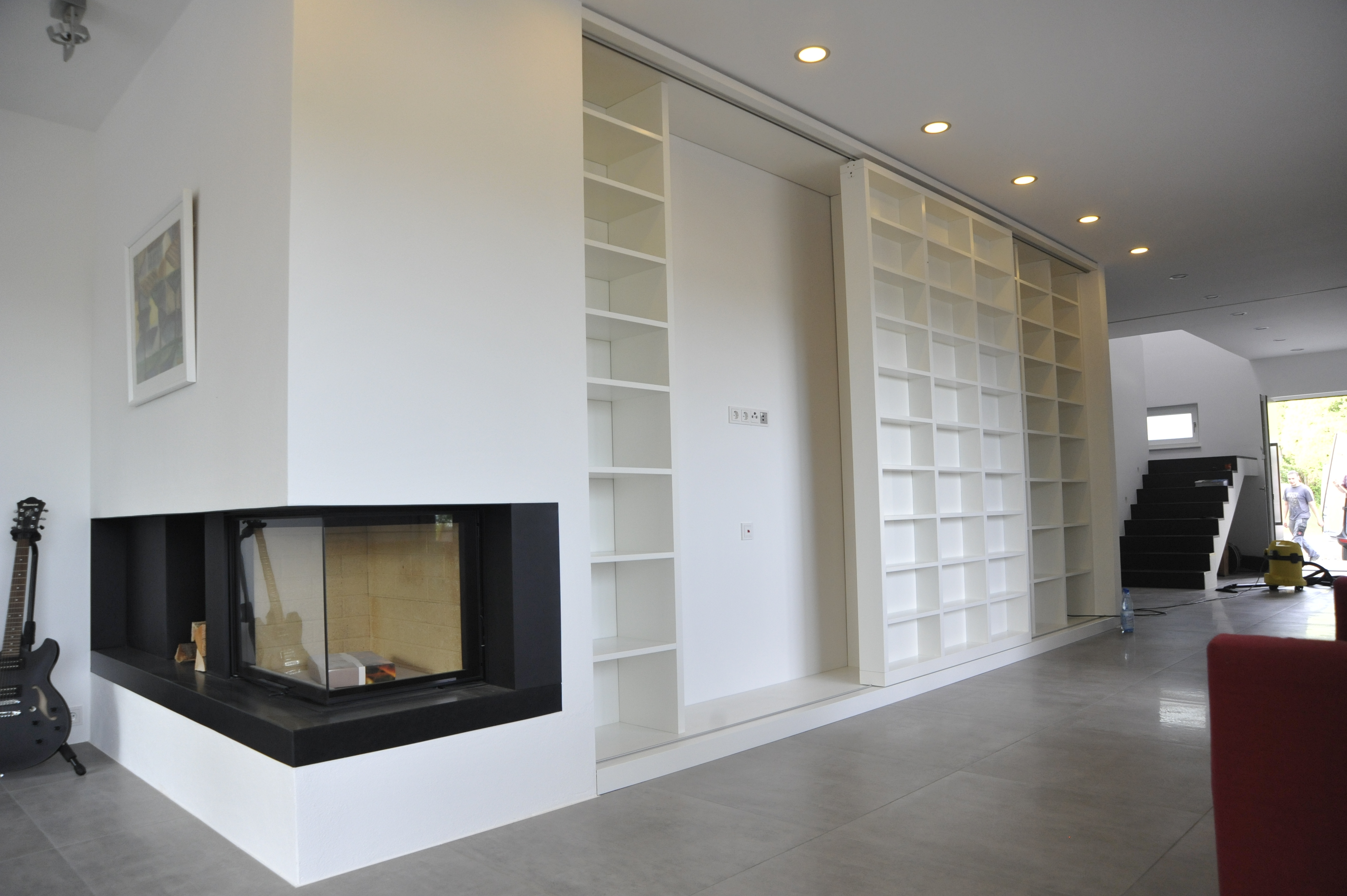 ![]() Einbaubücherregal mit verschiebbaren Vorderteil in Weißlack |