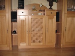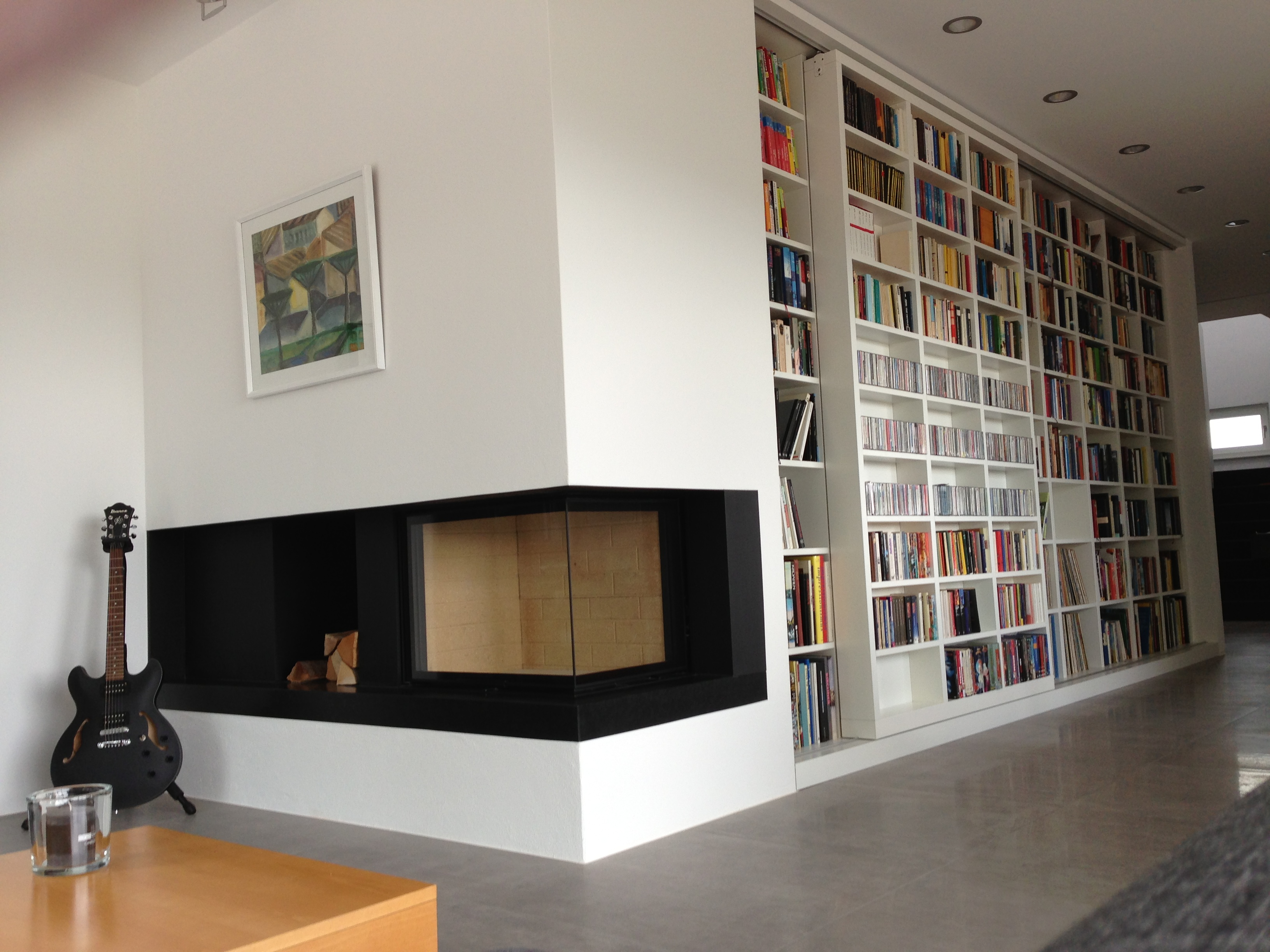 ![]() Blick von links. Zu sehen ist auch zwei offene Regale. Eines schließt sich direkt rechts neben an, das zweite dient als griffgünstig gelegenes Weinregal. |