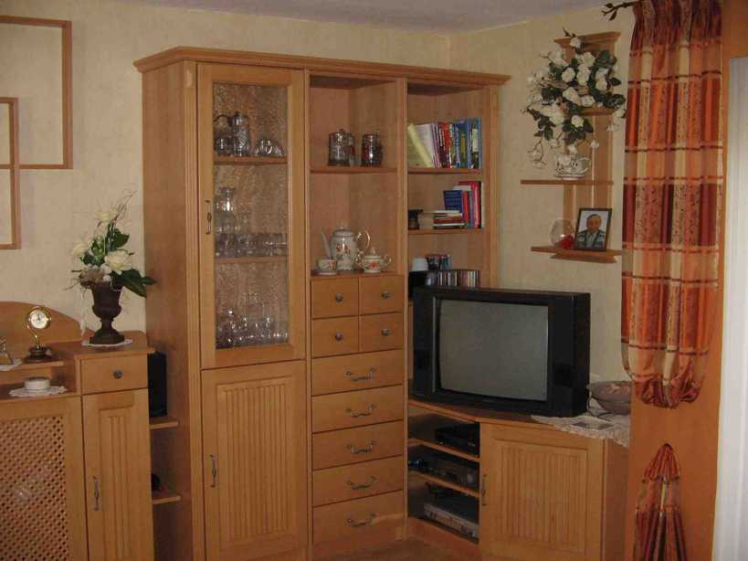 ![]() Fernsehrack mit verdecktem Kabelkanal passend zu Hängeschränken. |
